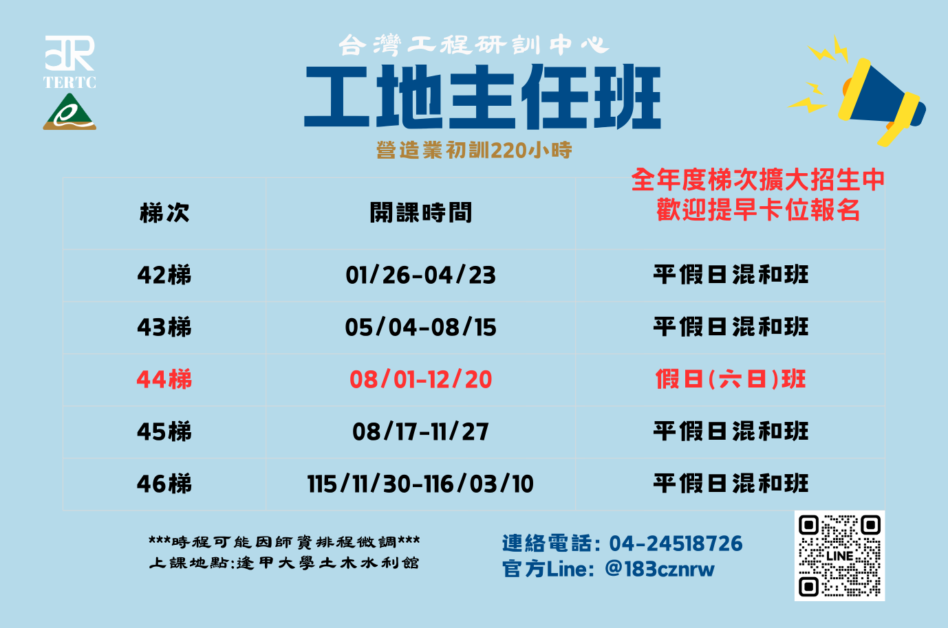 轉知逢甲大學-台灣工程研訓中心(TERTC)辦理職能訓練課程講習,歡迎會員踴躍報名參加,請查照。
