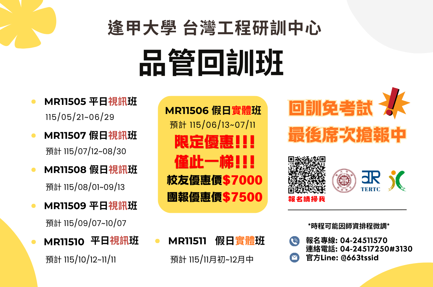 轉知逢甲大學台灣工程研訓中心辦理「人本街道規劃講習」及「公共工程品質管理回訓班」招生簡章與優惠資訊。